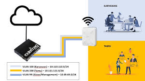 Deskripsi: “Membangun jaringan internet menggunakan Jaringan VLAN & Hotspot dengan melakukan instalasi mikrotik untuk mendapatkan jaringan internet. Teknologi yang digunakan: “Cisco Packet Tracer, Winbox, Modem, Switch, Router”.